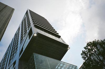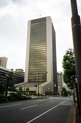 | 新生銀行本店ビル。旧長銀本店。長銀のスキャンダルや破綻の時にはよく登場したので有名です。T字型で足元が安定していないように見えるので私は嫌いです。建築家は斬新さを狙ったのでしょうけど、安定さを強調すべき銀行建築としてはちょっと・・・ |