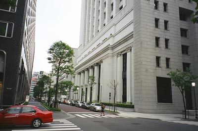 | みずほ銀行本店。旧第一勧業銀行本店。こちらもスキャンダルで有名になりましたね。昔は高い位置にDKBの文字が輝いていましたが今は脇にちょこっと看板が出ているのみでパット見ここがメガバンクの本店だとはわかりません。 |